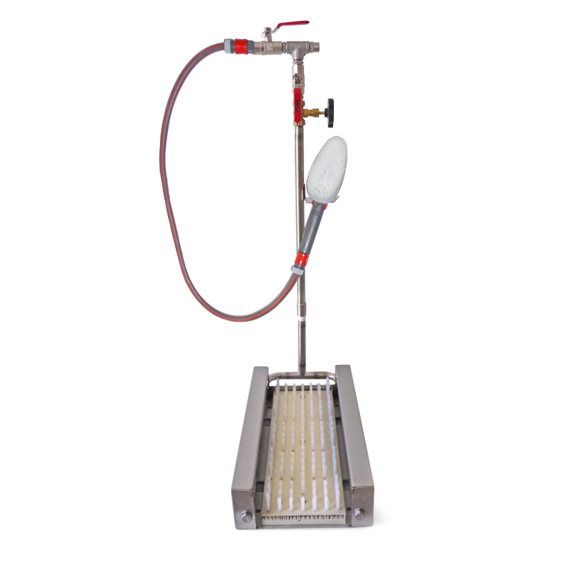 Le lave-chaussures avec bassine est parfaitement adapté pour un montage sur une grille existante, mais peut aussi être fixé facilement sur toute autre base. Il offre ainsi une grande flexibilité et une adaptabilité maximale selon l’usage prévu. Ce modèle est particulièrement conçu pour les petites structures, comme les exploitations agricoles comptant 1 à 3 collaborateurs.